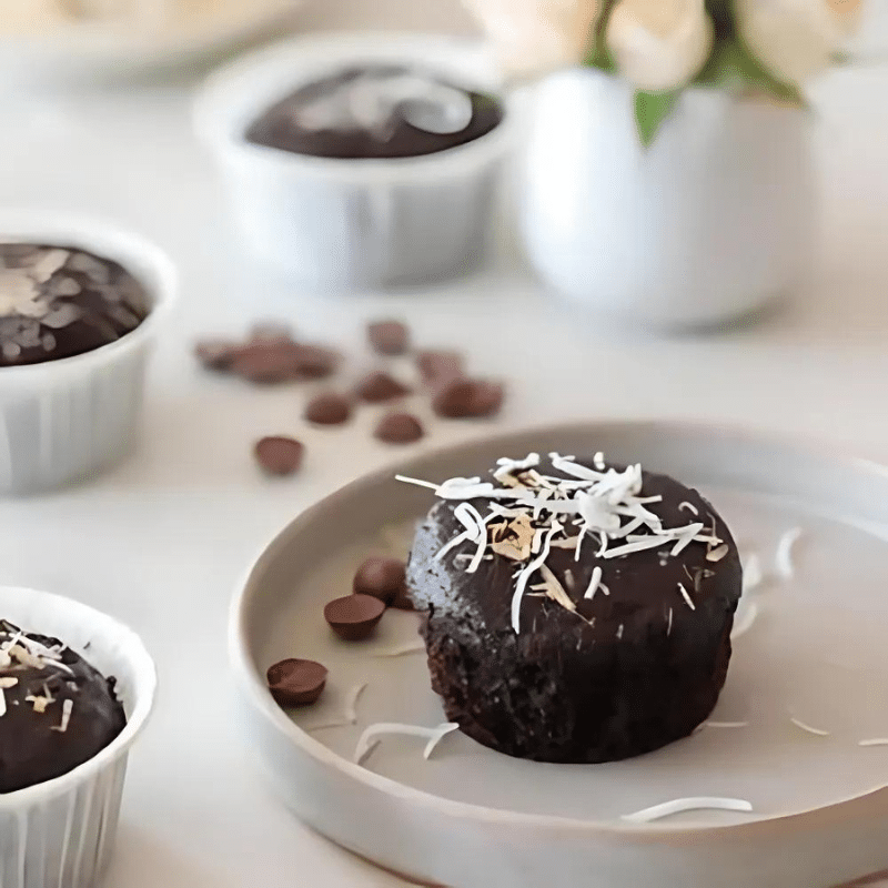 1. Pré-aqueça o forno a 180°C e unte uma forma pequena com óleo de coco. Forre o fundo com papel manteiga para facilitar a retirada do brownie.